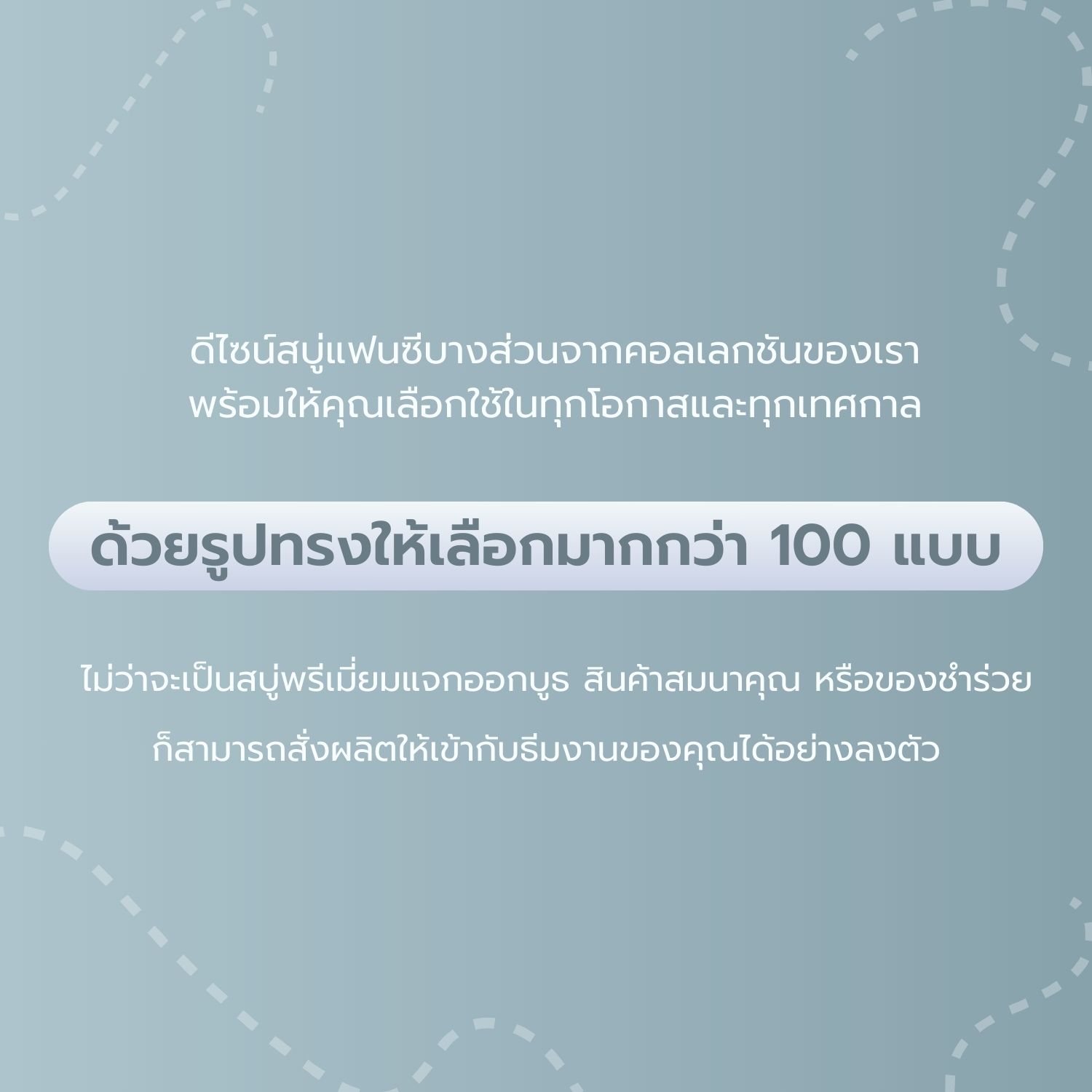 รูปทรงหลากหลาย น่ารัก แตกต่างไม่เหมือนใคร ด้วยรูปทรงมากกว่า 100 แบบ มาพร้อมกลิ่นหอมสดชื่น มีทั้งกลิ่นธรรมชาติและกลิ่นที่มีเอกลักษณ์เฉพาะตัว เหมาะสำหรับเป็นของฝาก ของที่ระลึก หรือใช้ทำความสะอาดเพิ่มความสดชื่นในทุกวัน ​