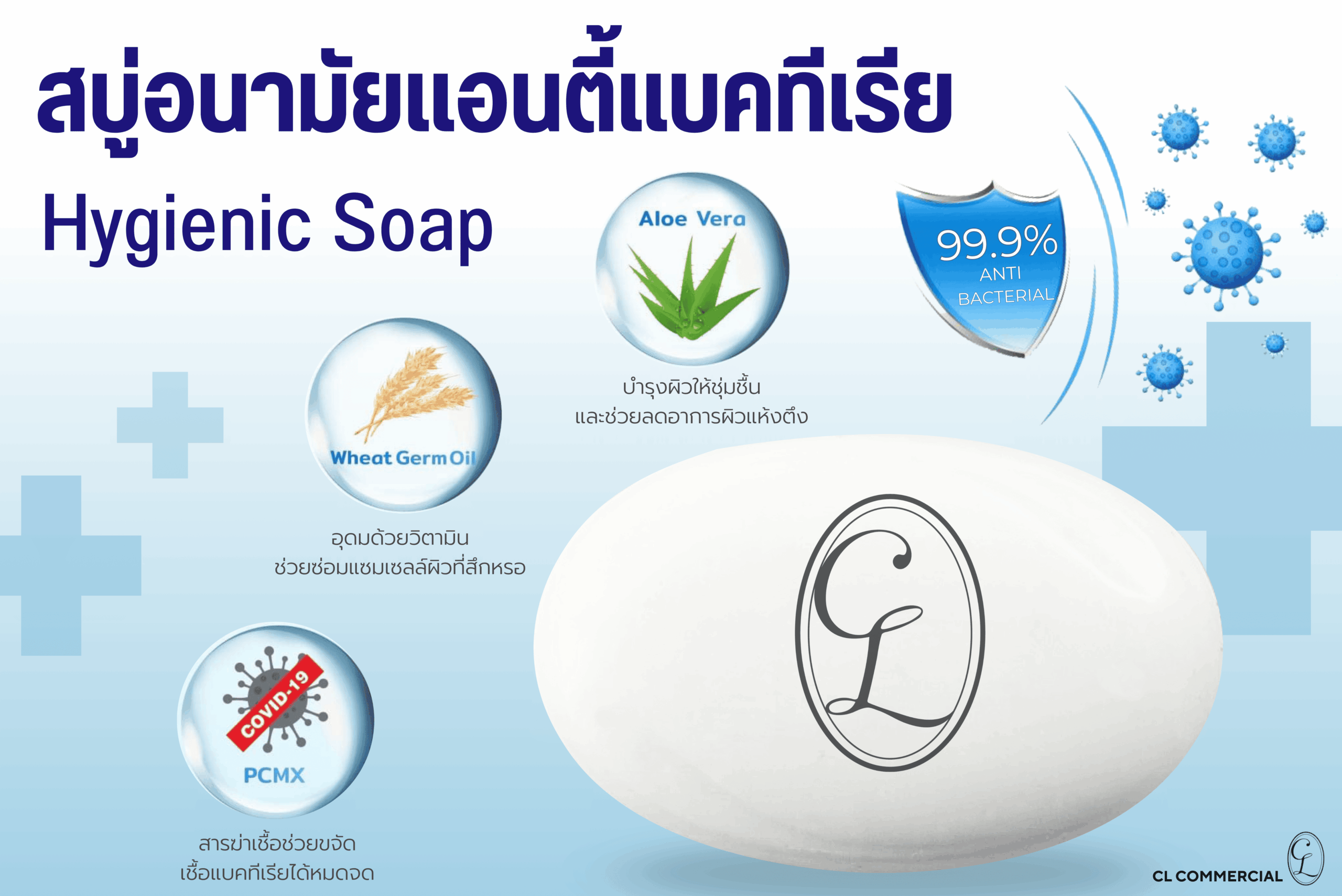 สบู่อนามัยสูตรแอนตี้แบคทีเรีย รูปแบบ Hygienic Soap ประสิทธิภาพสูงในการยับยั้งเชื้อแบคที่เรีย